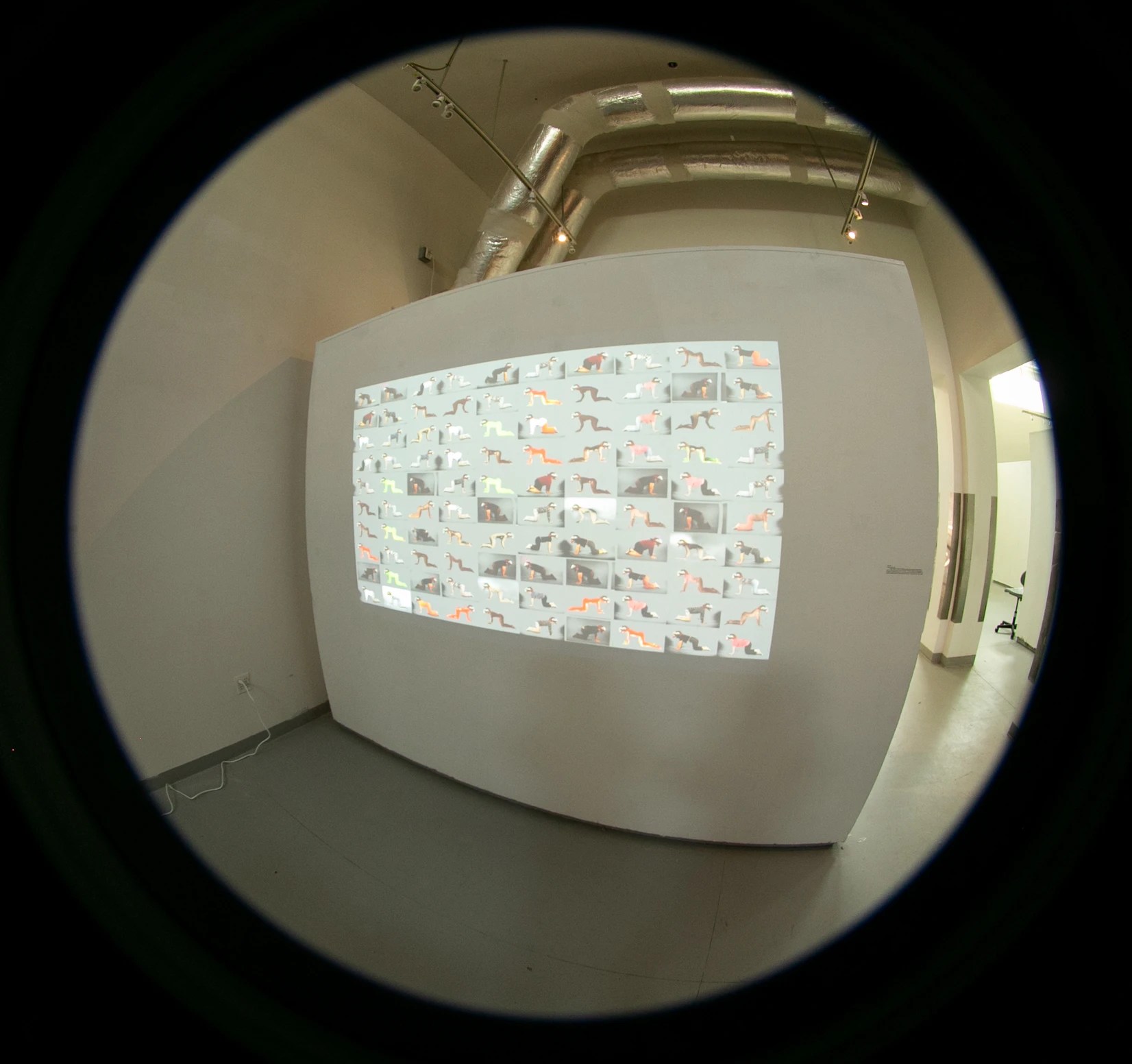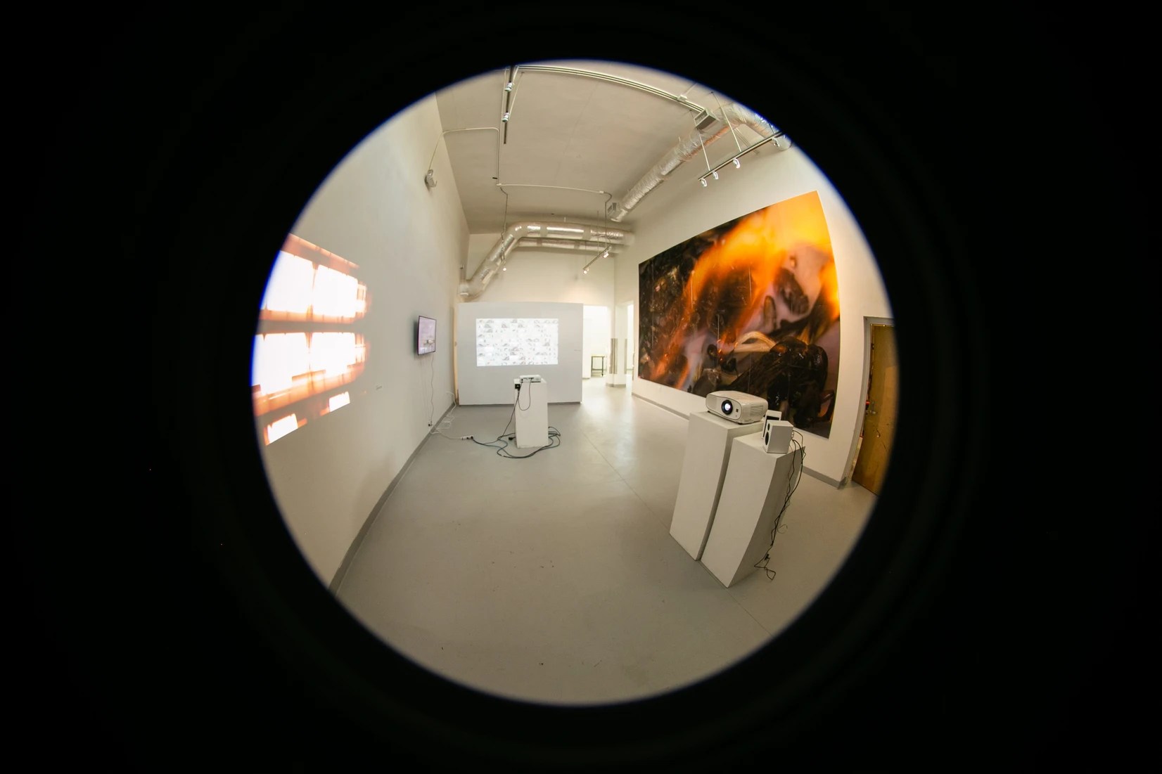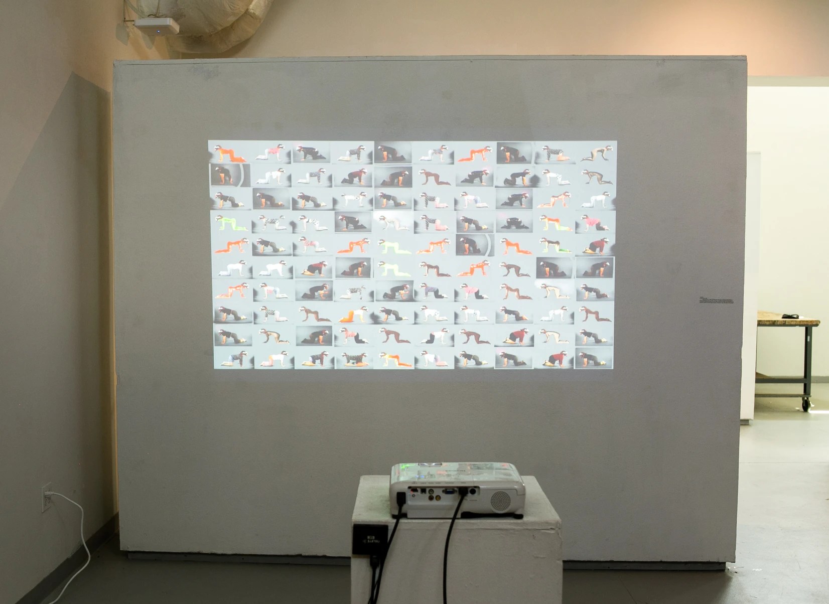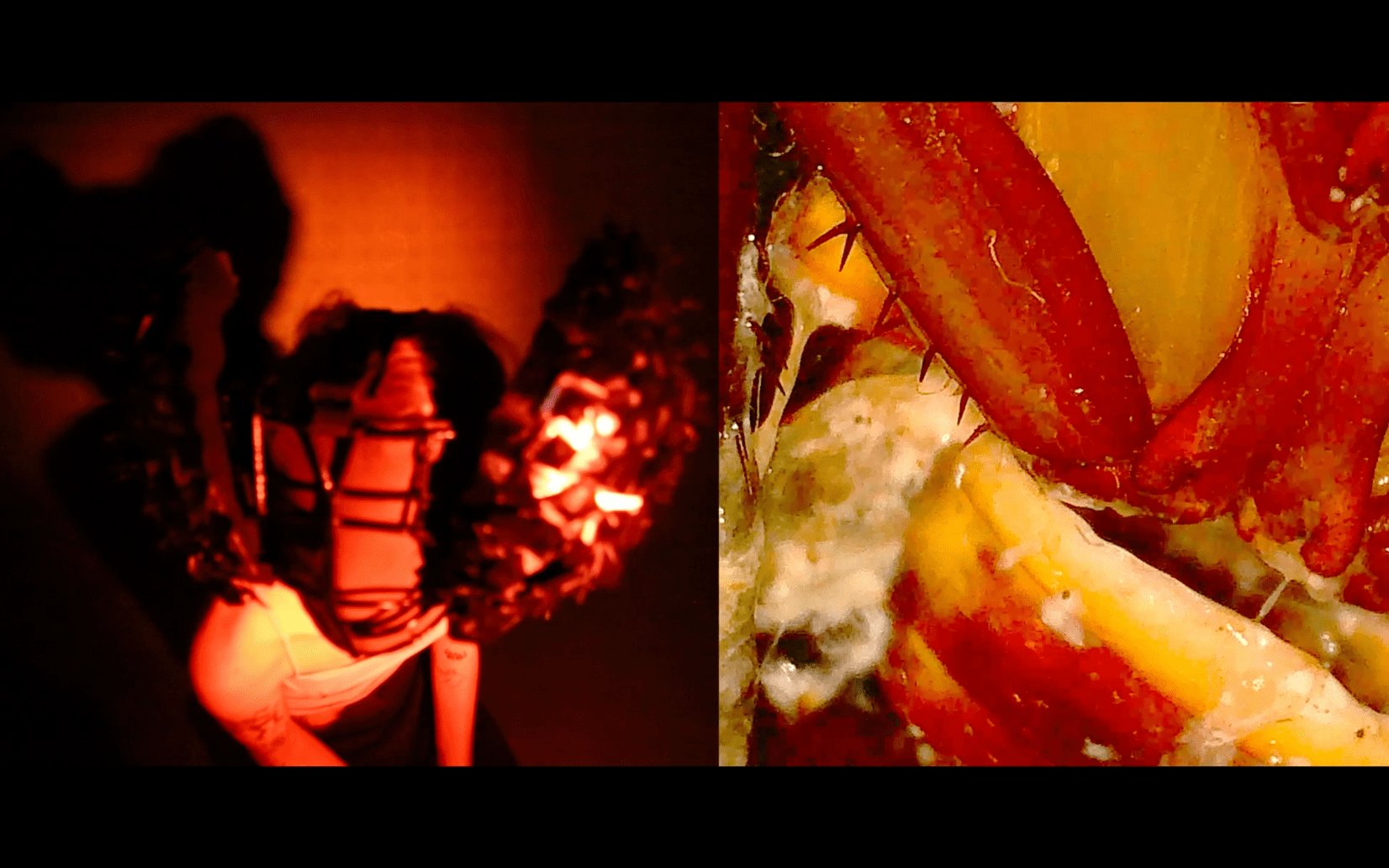 myrmecophilic genesis was a solo exhibition consisting of 4 individual works by Schwarz. A photographic installation, a short film projection, an LCD TV video performance documentation, and a looping AI generated video sequence via projection. The works were created in unison for the exhibition, making up a culmination of efforts of the senior thesis of the artist.